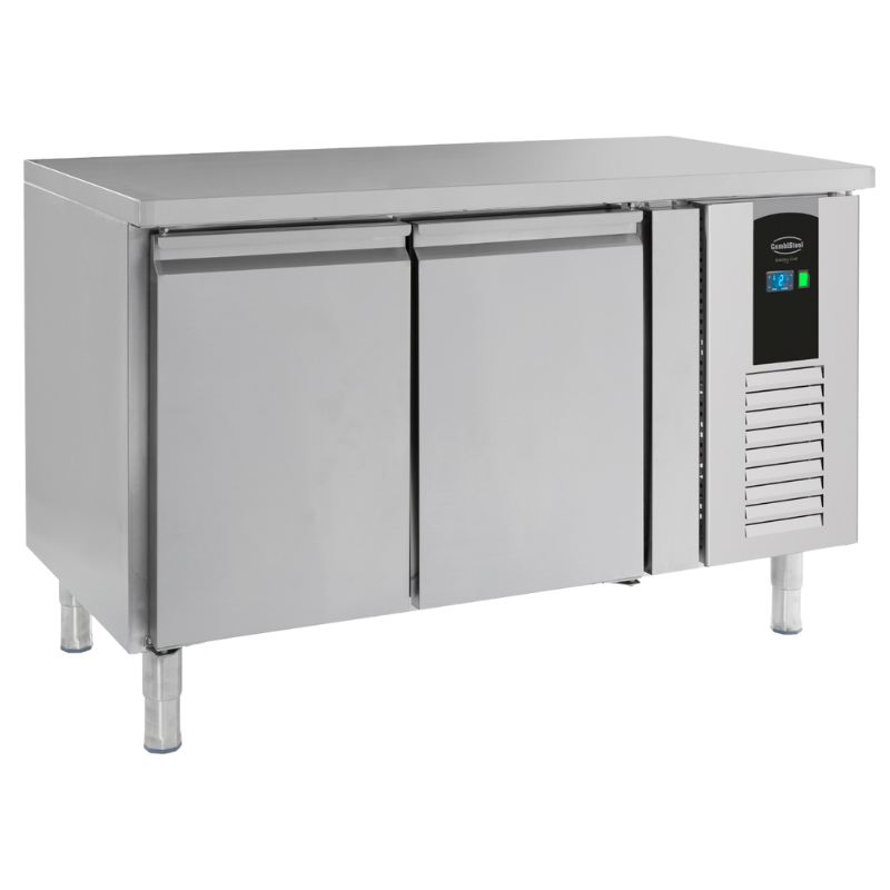 The refrigerated table benefits from a power of 350 watts and 50 mm insulation, ensuring temperatures are maintained between -2 and 8 °C, even under frequent door usage conditions. This efficiency is enhanced by the ventilated cooling technology which guarantees a uniform temperature, crucial for optimal food preservation.