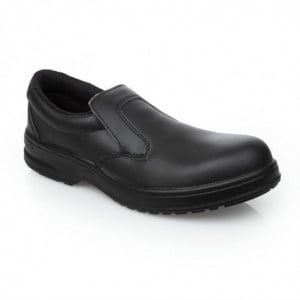 Designed by experts, these Black Safety Shoes for hospitality and catering are very lightweight and have a nice finish. Made of microfiber, they breathe 4 times better than leather. These moccasins are perfect for healthcare environments, industrial-scale cleaning, or butcheries to maintain a hygienic workplace.